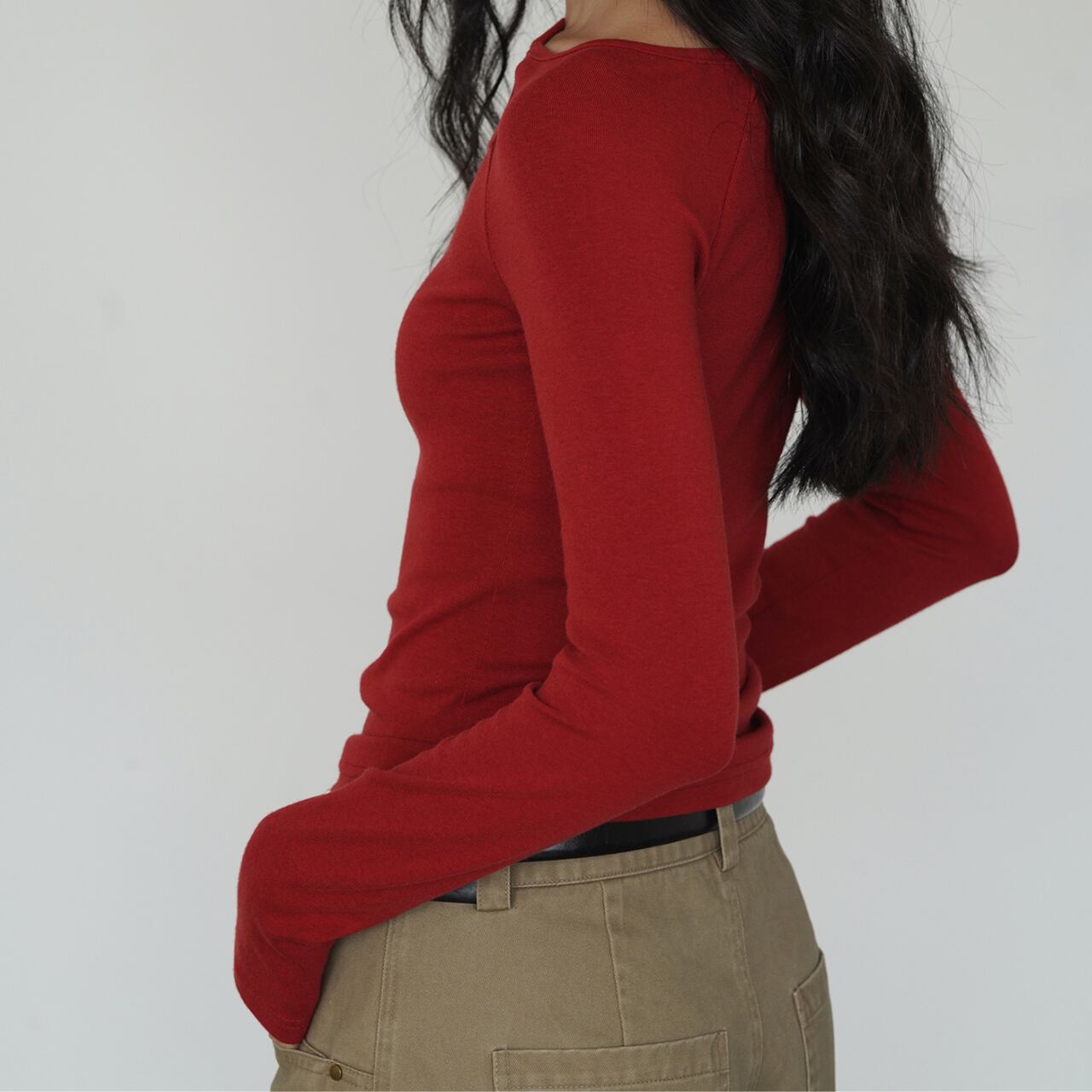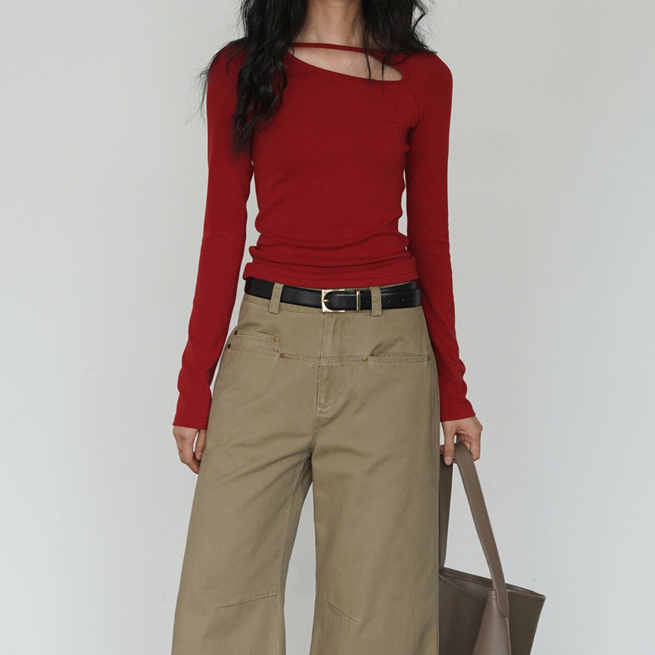 大胆なカットアウトが目を引く長袖トップスです。 シンプルなデザインながらも さりげない肌見せで個性を演出。 普段使いはもちろん、 パーティーシーンなどにもおすすめです。 ■サイズ(単位:cm) S 胸囲:74 着丈:53 袖丈:62 ウエスト:62 M 胸囲:78 着丈:54 袖丈:63 ウエスト:66 L 胸囲:83 着丈:55.5 袖丈:64 ウエスト:71 XL 胸囲:88 着丈:57 袖丈:65 ウエスト:76 海外製品のため、1-3cm誤差がある場合がございます。 ■カラー ブラック ヴィンテージレッド ■素材 レーヨン 38% 綿 28.5% アクリル 28.5% ポリウレタン 5%