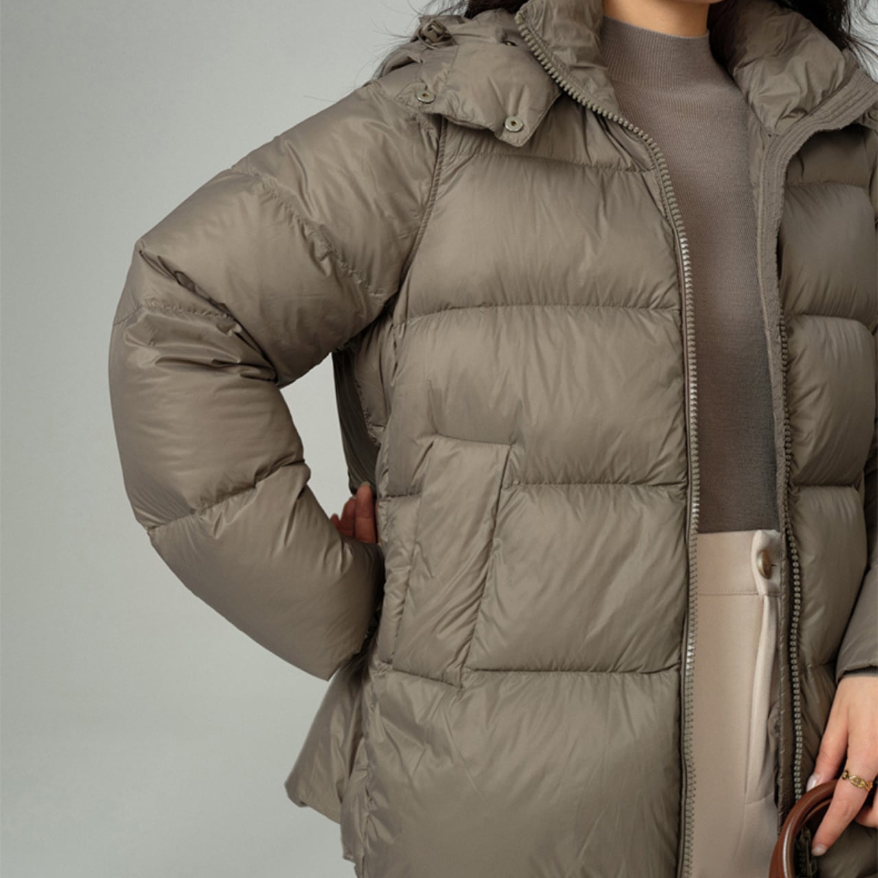 暖かく厚みのあるダウンジャケットです。 上品な色合いで、上品な女性の雰囲気です。 また、1着持っていれば便利なアウターです。 ■サイズ(単位:cm) XS 肩幅:36 胸囲:120 着丈:77 袖丈:62 S 肩幅:37 胸囲:122 着丈:78 袖丈:63 M 肩幅:27 胸囲:124 着丈:79 袖丈:64 海外製品のため、1-3cm誤差がある場合がございます。 ■カラー トープ(グレー寄りのブラウン) ブラック ■素材 表地 ナイロン 100% 裏地 ナイロン 100% 中袋 ポリエステル 100% 中綿 ポリエステル 100%