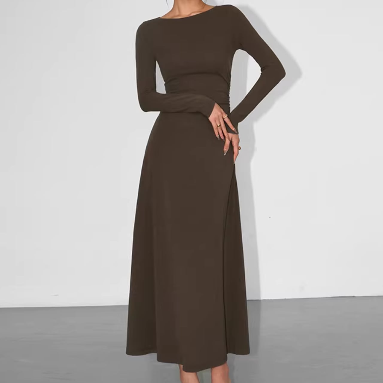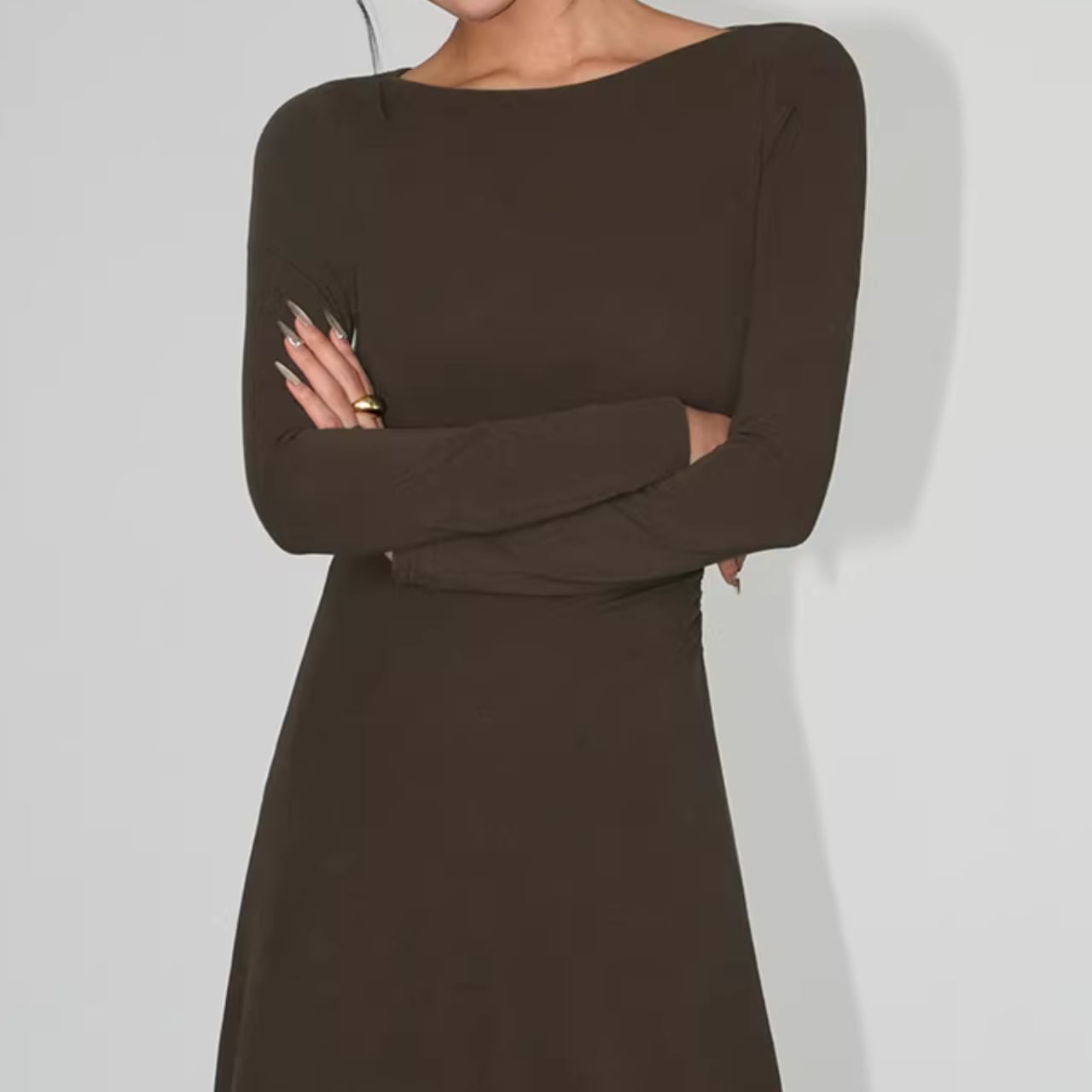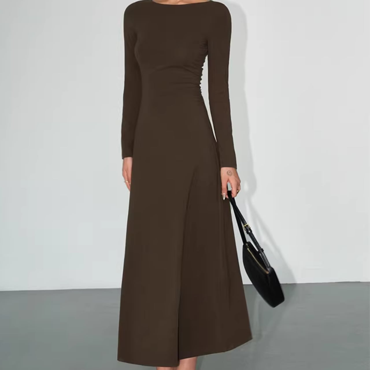 シンプルなデザインで着回し力抜群のワンピースです。 ミモレ丈なので 落ち着いた大人の女性らしさを演出します。 お手持ちのアクセサリーや小物と合わせて 様々なスタイリングを楽しめます。 ■サイズ(単位:cm) S 肩幅:36 胸囲:72 ヒップ:179 着丈:127 袖丈:59 袖口幅:9 M 肩幅:37 胸囲:76 ヒップ:183 着丈:128.5 袖丈:60 袖口幅:9.5 L 肩幅:38 胸囲:80 ヒップ:187 着丈:130 袖丈:61 袖口幅:10 海外製品の為1-3cm誤差がある場合がございます。 ■カラー ダークブラウン ブラック ■素材 ビスコース(ビスコース) 33.6% 綿花 25.2% ポリアクリロニトリル(アクリル) 25.2% ポリウレタンエラステイン(スパンデックス) 16%