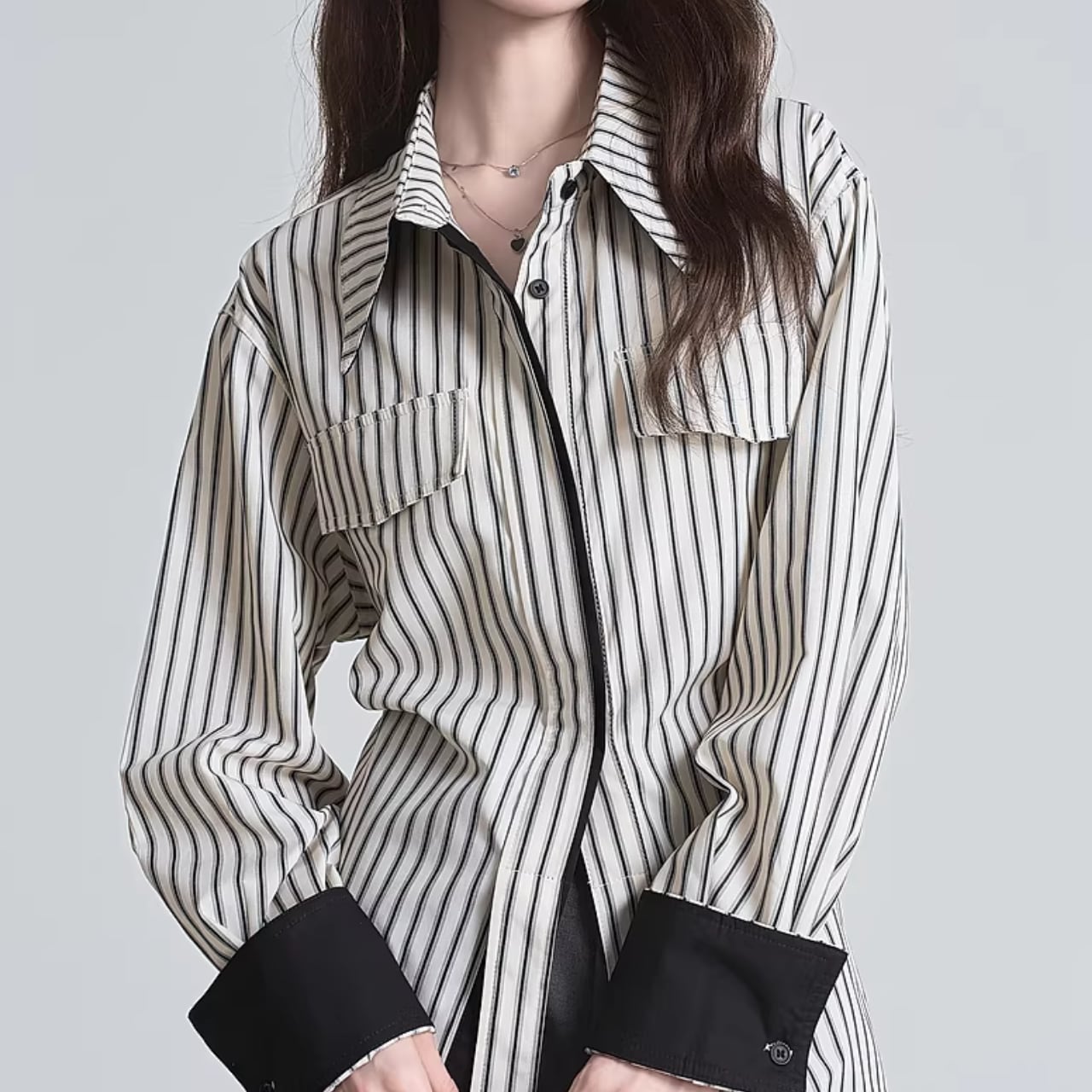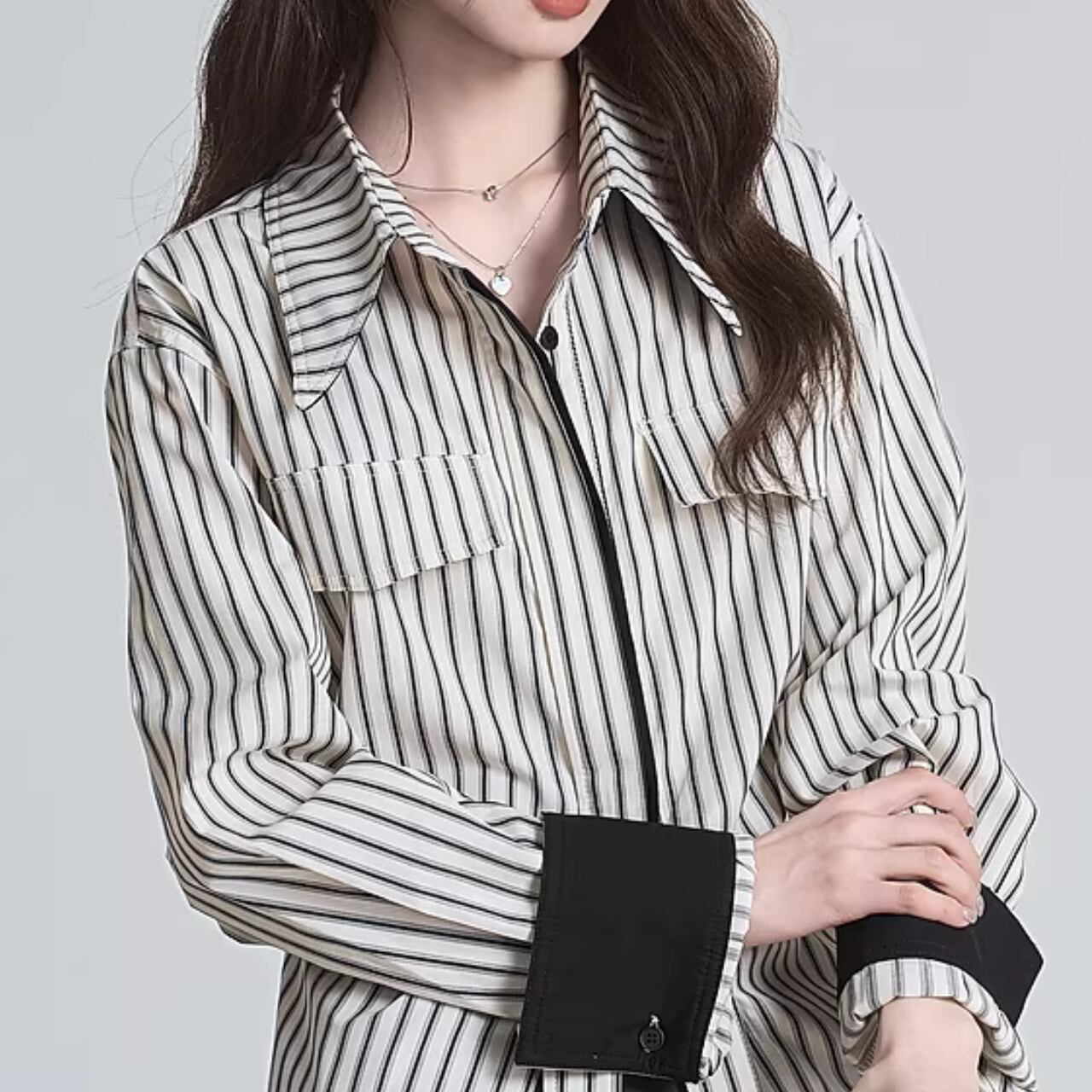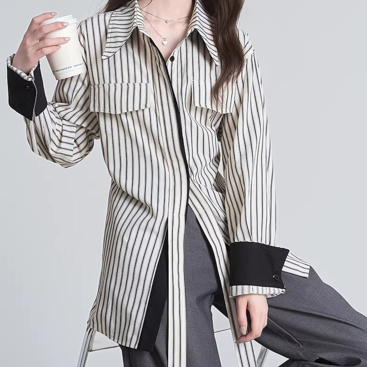 ストライプ柄が印象的な長袖シャツです。 シャツカラーで、きちんと感を演出しつつ カジュアルにも着こなせます。 パンツスタイルにもスカートスタイルにも 合わせやすい万能アイテムです。 ■サイズ(単位:cm) S 肩幅:44 胸囲:86 着丈:74 袖丈:62 M 肩幅:45 胸囲:90 着丈:75 袖丈:63 L 肩幅:46 胸囲:94 着丈:76 袖丈:64 海外製品の為1-3cm誤差がある場合がございます。 ■カラー ブラック×ホワイト