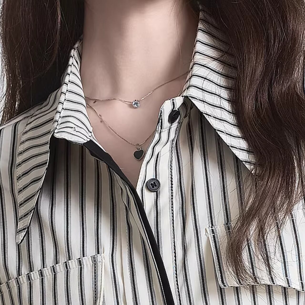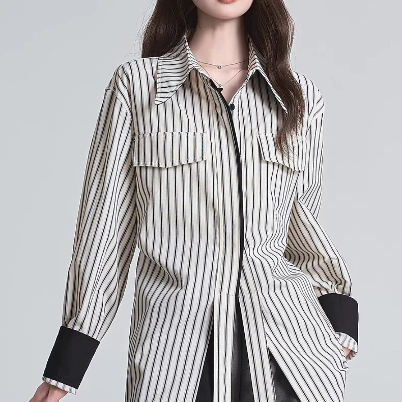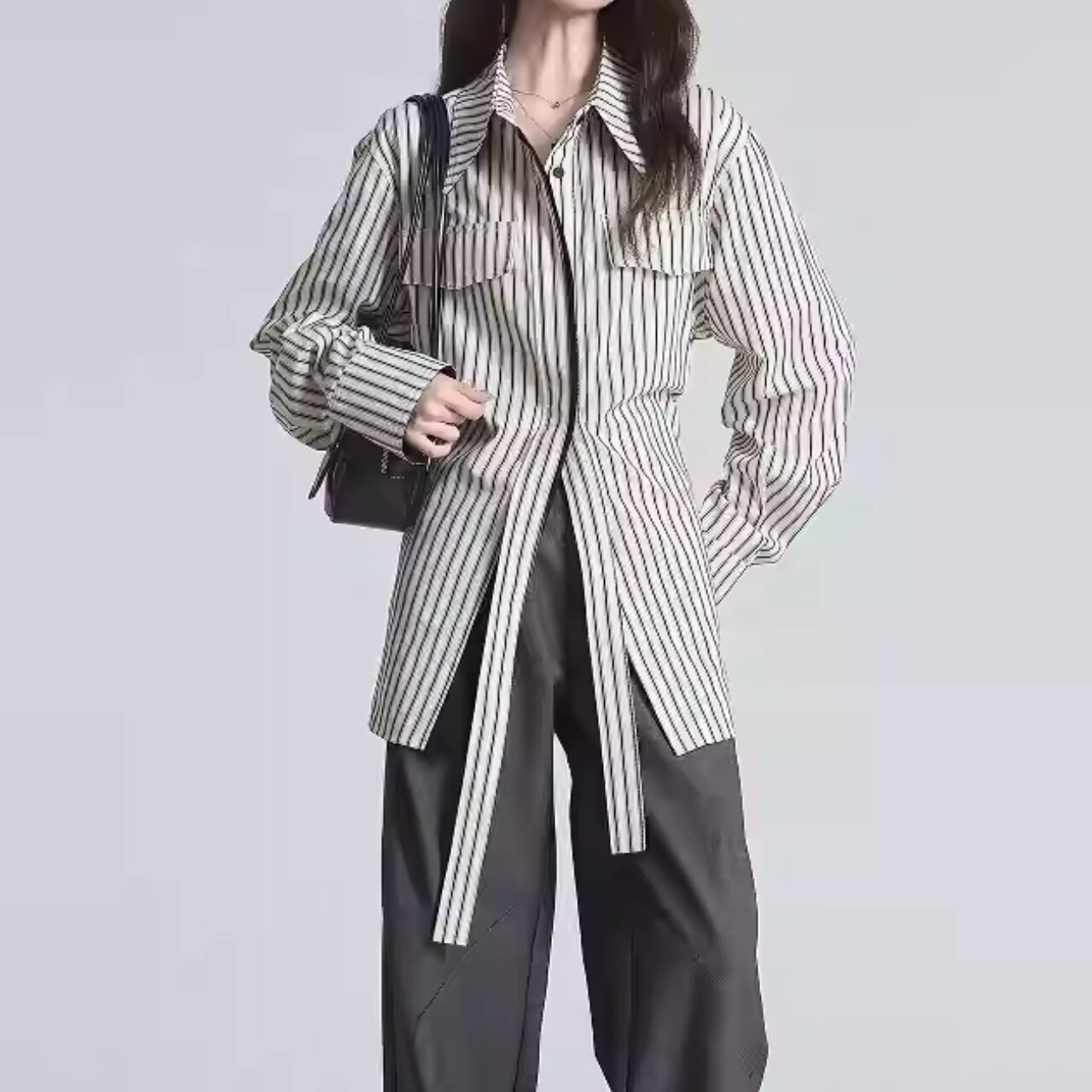 ストライプ柄が印象的な長袖シャツです。 シャツカラーで、きちんと感を演出しつつ カジュアルにも着こなせます。 パンツスタイルにもスカートスタイルにも 合わせやすい万能アイテムです。 ■サイズ(単位:cm) S 肩幅:44 胸囲:86 着丈:74 袖丈:62 M 肩幅:45 胸囲:90 着丈:75 袖丈:63 L 肩幅:46 胸囲:94 着丈:76 袖丈:64 海外製品の為1-3cm誤差がある場合がございます。 ■カラー ブラック×ホワイト