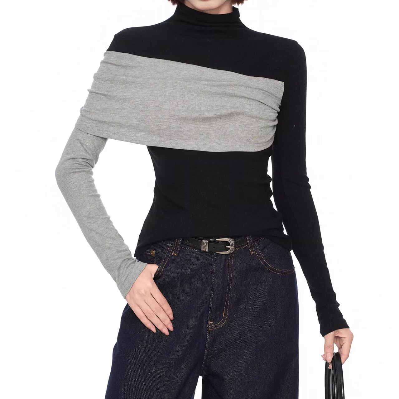 肩のデザインが特徴的なカットソーです。 クロップド丈でスタイルアップ効果も期待できます。 カジュアルな着こなしはもちろん きれいめなスタイリングにも合わせやすい一枚です。 ■サイズ(単位:cm) S 肩幅:35 胸囲:90 着丈:50.5 袖丈:58 M 肩幅:36 胸囲:94 着丈:52 袖丈:59 L 肩幅:37 胸囲:98 着丈:53.5 袖丈:60 XL 肩幅:38 胸囲:102 着丈:55 袖丈:61 海外製品の為1-3cm誤差がある場合がございます。 ■カラー ブラック×グレー