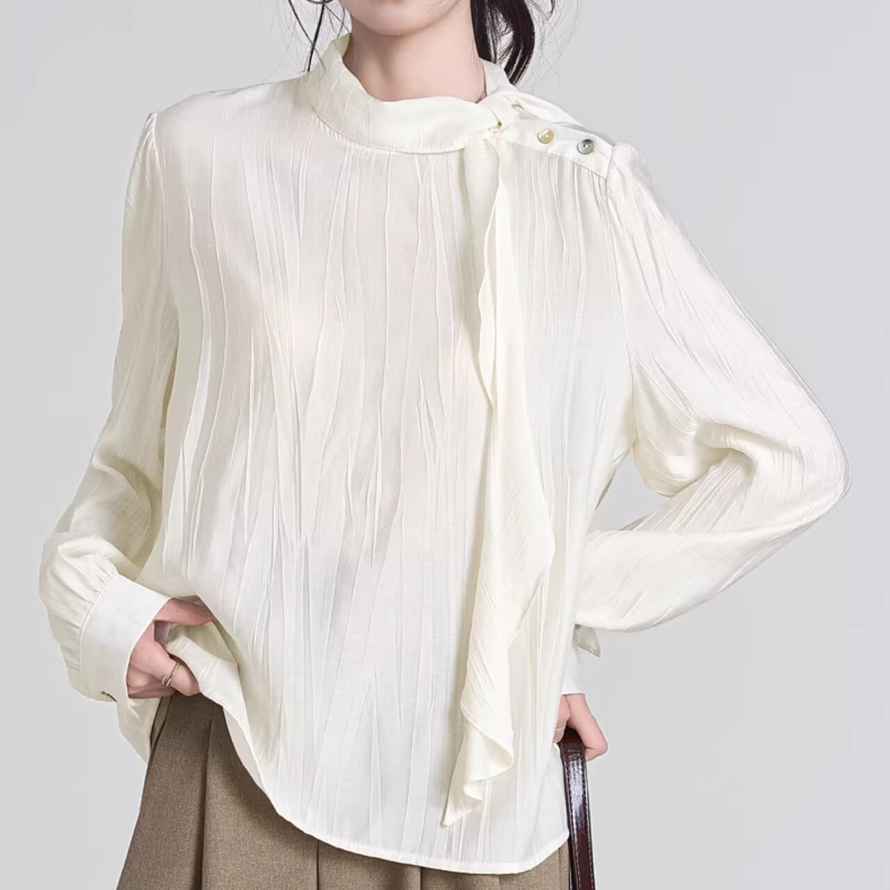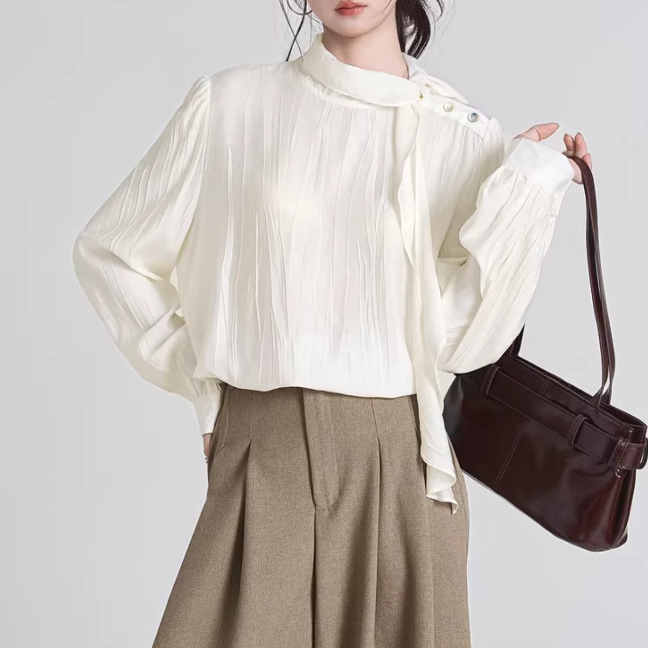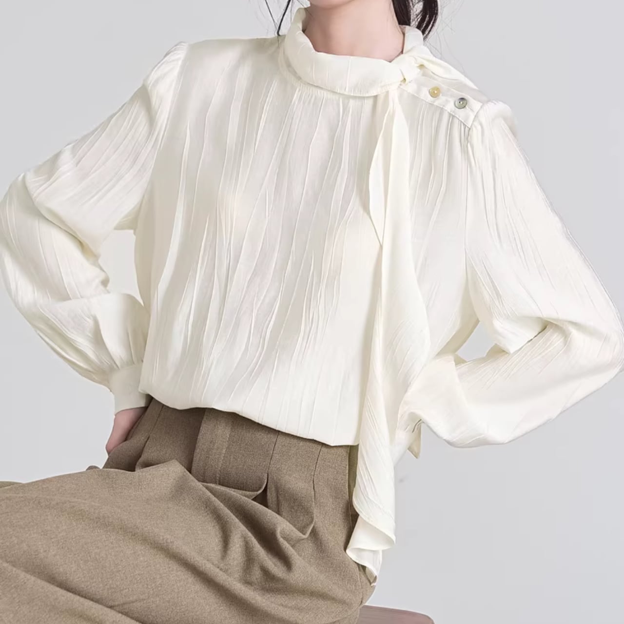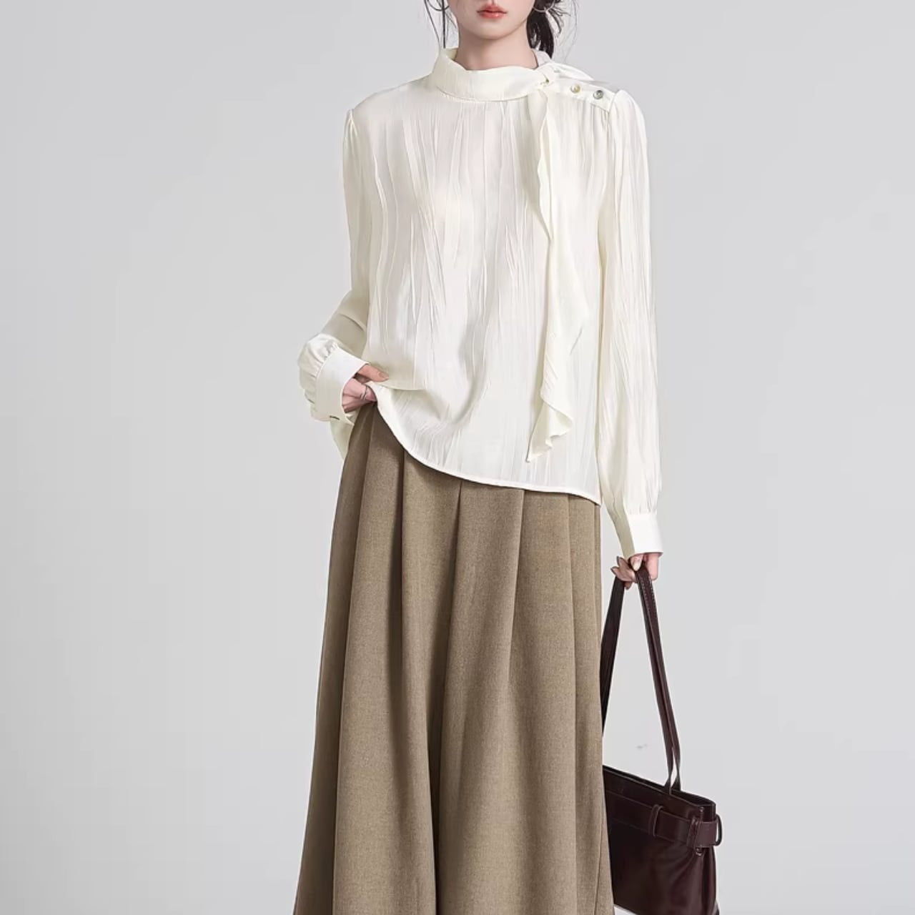 上品な印象のシャツカラーブラウスです。 袖口はボタンで調節可能なので インナーに合わせて調整できます。 お仕事着としてはもちろん オフの日のお出かけにもぴったりです。 ■サイズ(単位:cm) S 肩幅:35 胸囲:93 着丈:60 袖丈:58 M 肩幅:36 胸囲:97 着丈:61 袖丈:59 L 肩幅:37 胸囲:101 着丈:62 袖丈:60 海外製品の為1-3cm誤差がある場合がございます。 ■カラー アプリコット